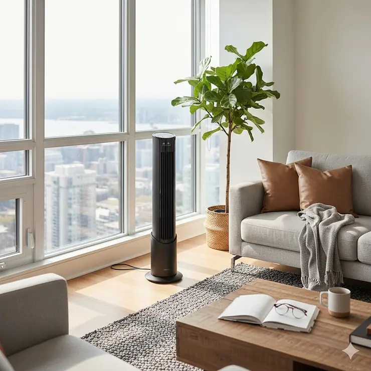 Energy efficiency remains a key consideration for Canadian homeowners. Most tower fans consume between 35 to 60 watts of power, significantly less than air conditioning units that can use 500 to 1,500 watts or more. When used strategically alongside your existing HVAC system, tower fans can help you reduce overall energy consumption while maintaining comfort.