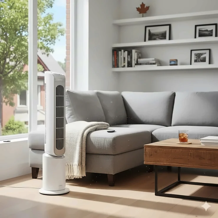 Many Canadians find the sweet spot involves both—AC for extreme heat days (typically 5-15 days per summer in most provinces), with tower fans handling everything else and extending AC’s effectiveness when used together.